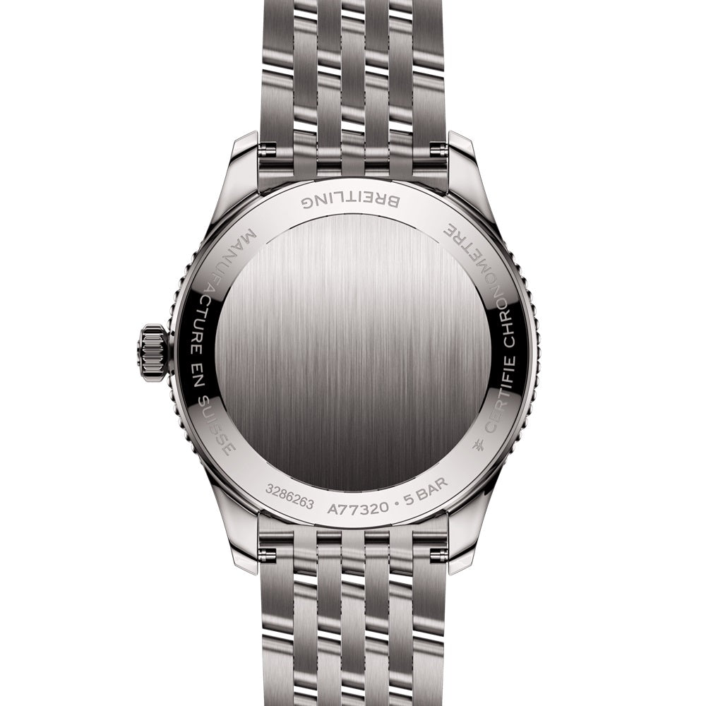 Unworn Breitling Navitimer A77320171C1A1, 32 mm, Blue mother-of-pearl dial, Stainless steel case. Fixed bezel. Cambered sapphire, glareproofed both sides crystal. Breitling 77 calibre, Thermocompensated SuperQuartz™ movement, 3 jewels. Stainless steel bracelet. Water resistance 50 m.