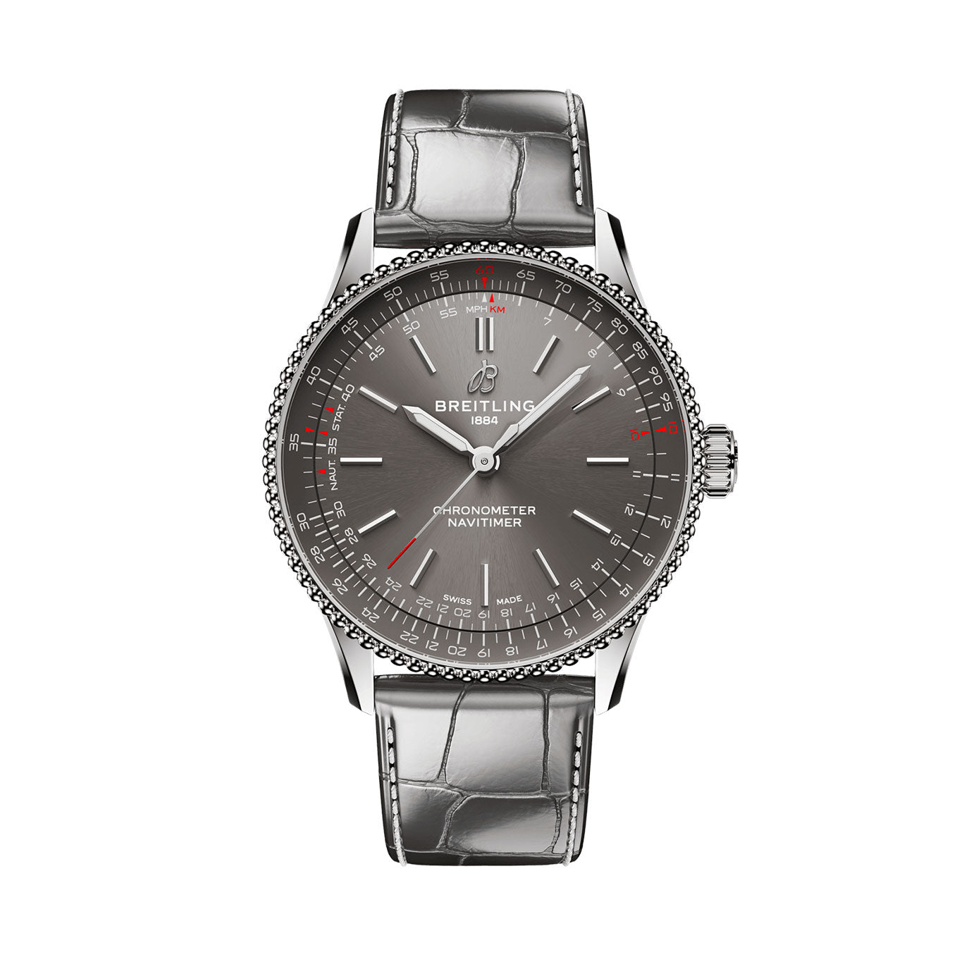 Unworn Breitling Navitimer A77320E61A2A1, 32 mm, Mother-of-pearl dial, Stainless steel case. Fixed bezel. Cambered sapphire, glareproofed both sides crystal. Breitling 77 calibre, Thermocompensated SuperQuartz™ movement, 3 jewels. Stainless steel bracelet. Water resistance 50 m.