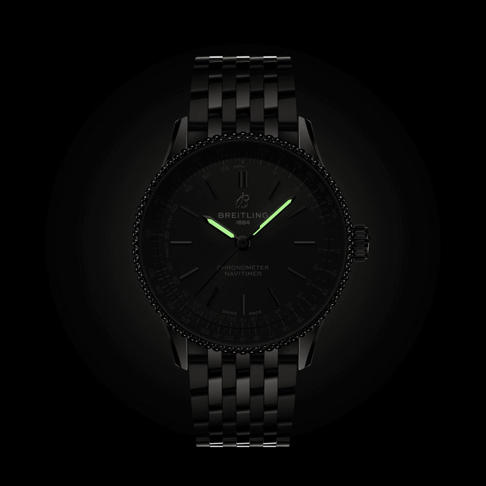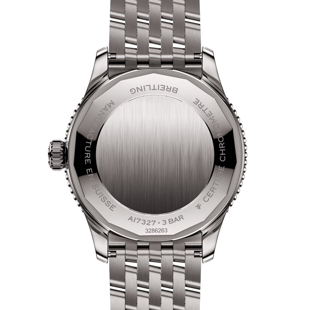 Unworn Breitling Navitimer Automatic A17327381B1A1, 36 mm, Anthracite dial, Stainless steel case. Bidirectional, slide rule bezel. Cambered sapphire, glareproofed both sides crystal. Breitling 17 calibre, Self-winding mechanical movement, 38 hrs power reserve, 26 jewels. Stainless steel bracelet. Water resistance 30 m.
