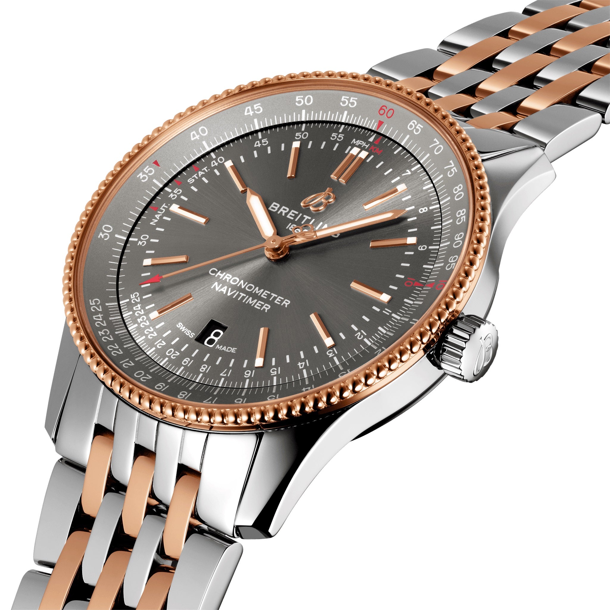 Unworn Breitling Navitimer AUTOMATIC U17326121M1U1, 41 mm, Anthracite dial, Stainless steel & 18k red gold case. Fixed bezel. Cambered sapphire, glareproofed both sides crystal. Breitling 17 calibre, Self-winding mechanical movement, 38 hrs power reserve, 25 jewels. Stainless steel & 18k red gold bracelet. Water resistance 30 m.