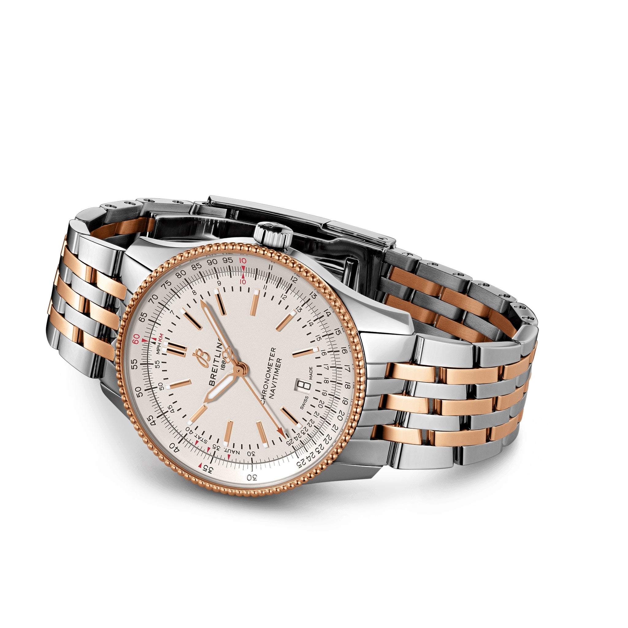 Unworn Breitling Navitimer AUTOMATIC U17326211G1U1, 41 mm, Cream dial, Stainless steel & 18k red gold case. Cambered sapphire, glareproofed both sides crystal. Breitling 17 calibre, Self-winding mechanical movement, 38 hrs power reserve, 25 jewels. Stainless steel bracelet. Water resistance 30 m.