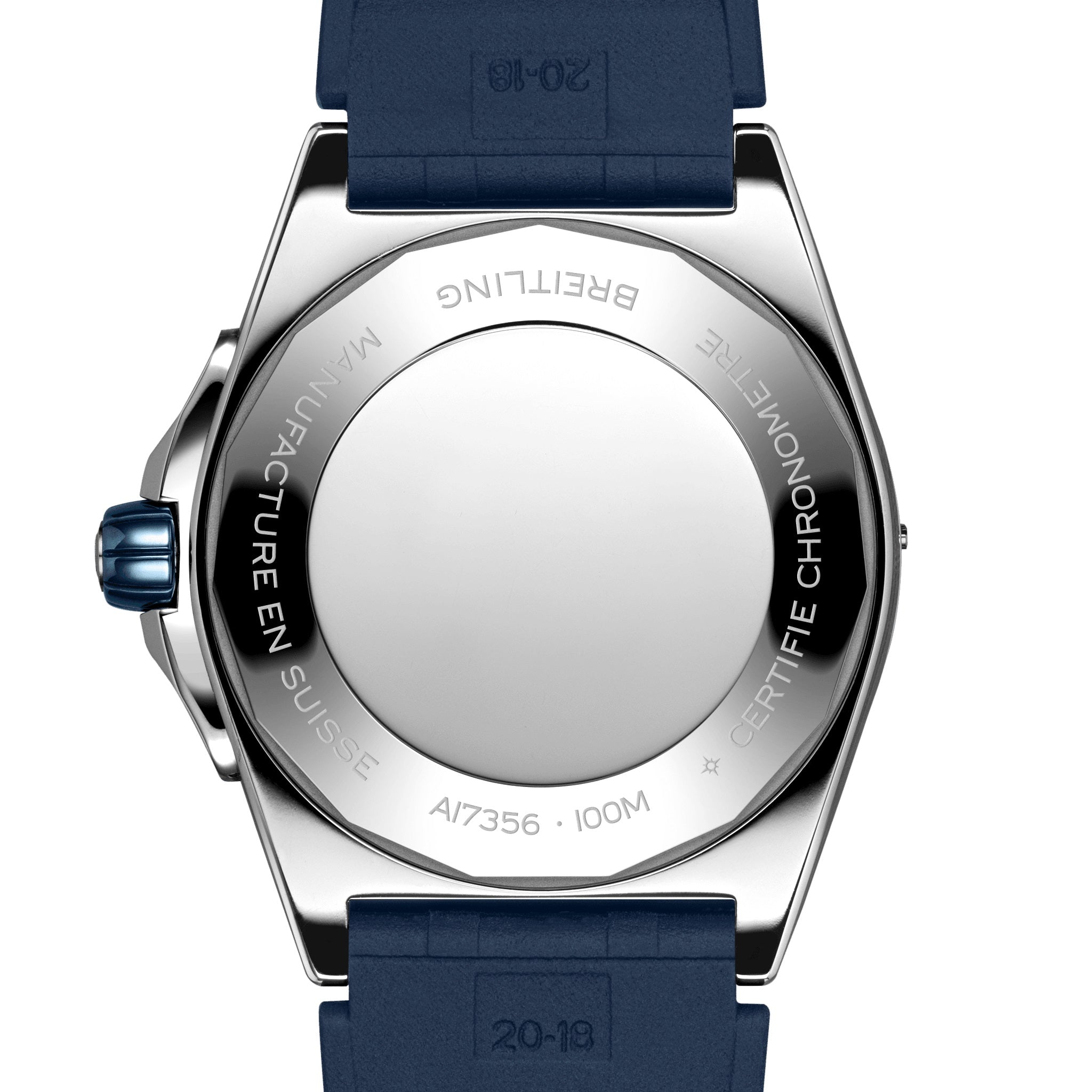 Unworn Breitling Super Chronomat AUTOMATIC A17356531C1S1, 38 mm, Blue dial, Stainless steel case. Unidirectional, ratcheted bezel. Convex sapphire crystal, glareproofed both sides crystal. Breitling 17 calibre, Self-winding mechanical movement, 38 hrs power reserve, 25 jewels. Rubber strap with Folding clasp. Water resistance 100 m.
