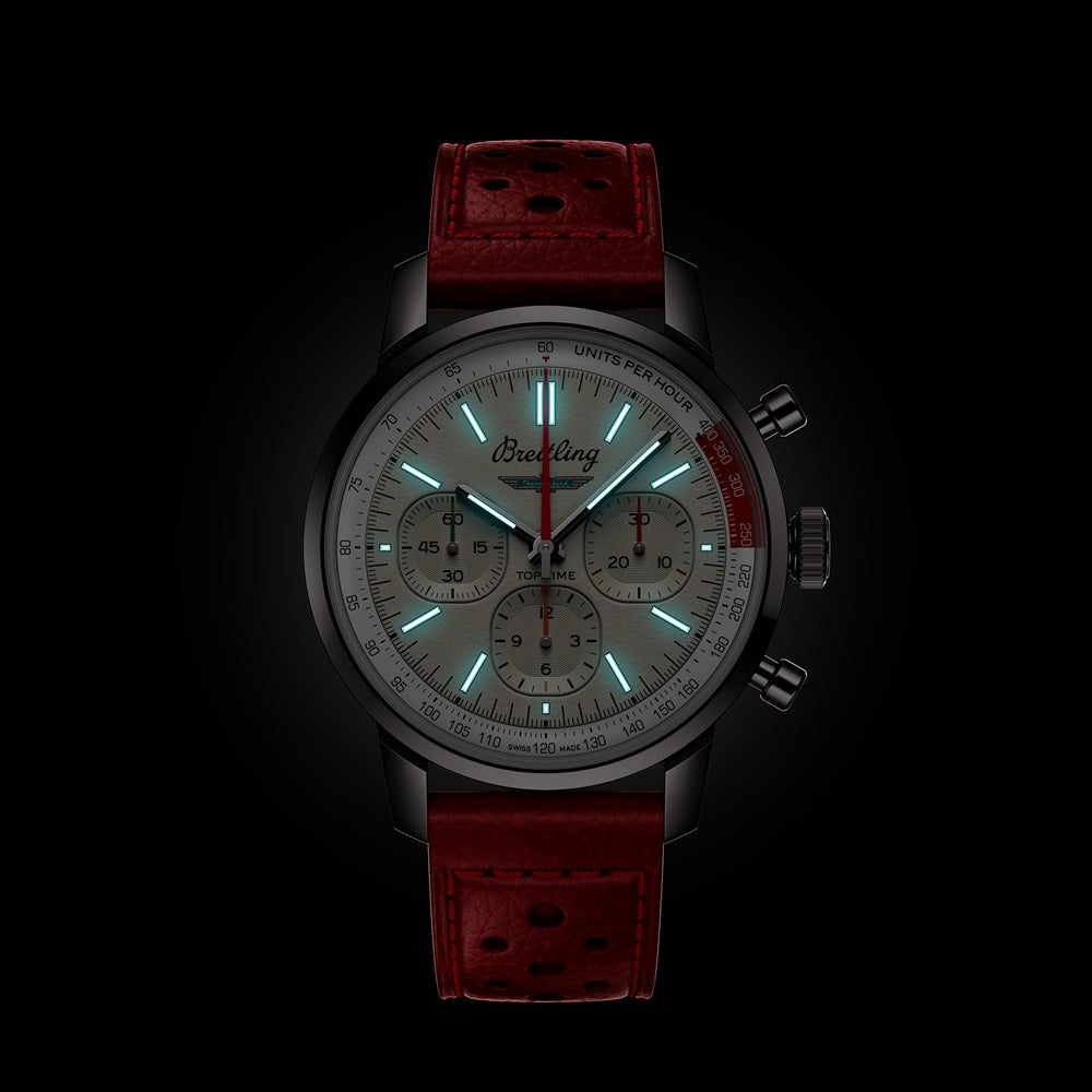 Unworn Breitling Top Time B01 Ford Thunderbird AB01766A1A1X1. 41 mm. White dial. Stainless steel case. Fixed bezel. Cambered sapphire, glareproofed both sides crystal. Breitling 01 (Manufacture) calibre. Self-winding mechanical movement. 70 hrs power reserve. 40 jewels. Calfskin leather strap with Folding clasp. Water resistance 100 m.