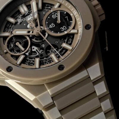 Unworn Hublot Big Bang INTEGRATED BEIGE CERAMIC 451.CZ.4620.CZ. 42 mm, Mat Beige Skeleton dial, Satin-finished and Polished Beige Ceramic case, Satin-finished and Polished Beige Ceramic with 6 H-shaped Titanium Screws bezel, HUB1280 UNICO calibre, Self-winding Chronograph Flyback Movement with Column Wheel movement, 72 h power reserve, Satin-finished and Polished Beige Ceramic Bracelet with Black-plated Titanium Deployant Buckle Clasp. Water resistant to 100 m.