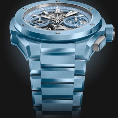 - Dial color: Mat Blue Skeleton