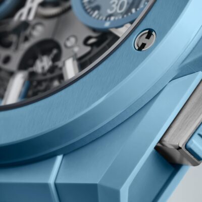 Unworn Hublot Big Bang INTEGRATED SKY BLUE CERAMIC 451.EX.5120.EX. 42 mm, Mat Blue Skeleton dial, Satin-finished and Polished Blue Ceramic case, Satin-finished and Polished Blue Ceramic with 6 H-shaped Titanium Screws bezel, HUB1280 UNICO calibre, Self-winding Chronograph Flyback Movement with Column Wheel movement, 72 h power reserve, Satin-finished and Polished Blue Ceramic Bracelet with Black-plated Titanium Deployant Buckle Clasp. Water resistant to 100 m.