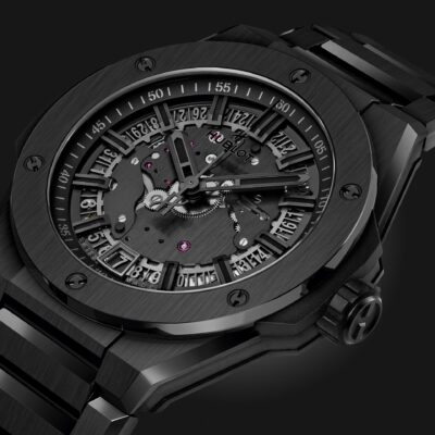 Unworn Hublot Big Bang INTEGRATED TIME ONLY ALL BLACK 456.CX.0140.CX. 40 mm, Sapphire dial, Polished and Satin-finished Black Ceramic case, Sapphire with Anti-reflective Treatment crystal, Satin-finished and Polished Black Ceramic with 6 H-shaped Titanium Screws bezel, HUB1710 calibre, Self-winding Movement, 50hours power reserve, Satin-finished and Polished Black Ceramic Bracelet with Black-plated Titanium Deployant Buckle Clasp. Water resistant to 100 m.