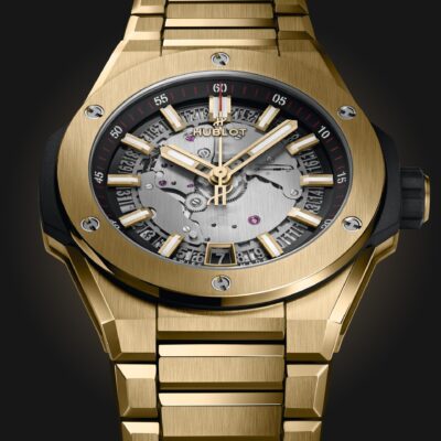 Unworn Hublot Big Bang INTEGRATED TIME ONLY YELLOW GOLD 456.VX.0130.VX. 40 mm, Sapphire dial, Satin-finished and Polished 18K Yellow Gold case, Sapphire with Anti-reflective Treatment crystal, Satin-finished and Polished 18K Yellow Gold with 6 H-shaped Titanium Screws bezel, HUB1710 calibre, Self-winding Movement, 50hours power reserve, Satin-finished and Polished 18K Yellow Gold Bracelet with 18K Yellow Gold Deployant Buckle Clasp. Water resistant to 100 m.