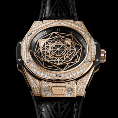 - Bezel Material: Polished 18K King Gold Set with 96 Diamonds totaling 1.00ct with 6 H-shaped Titanium Screws Hexagonal Decor Designed by Maxime Buchi