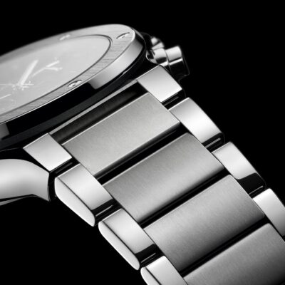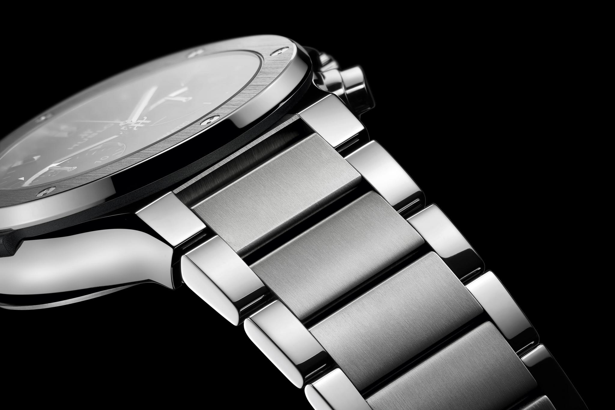 - Bracelet Material: Satin-finished and polished titanium bracelet with polished outer links and brushed finished center links