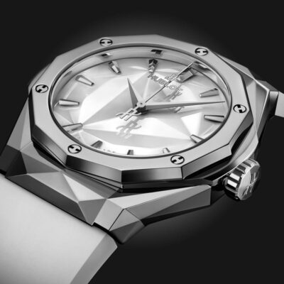 Unworn Hublot Classic Fusion Orlinski Titanium White 550.NS.2200.RW.ORL20. 40 mm, Polished Faceted White Dial, Polished Titanium case, Sapphire with Anti-reflective Treatment crystal, Polished Blue Ceramic with 6 H-shaped Black-plated Titanium Screws bezel, HUB1100 calibre, Self-winding Movement, 42 Hours power reserve, White Smooth Rubber Straps with Stainless Steel Deployant Buckle Clasp. Water resistant to 50 m.