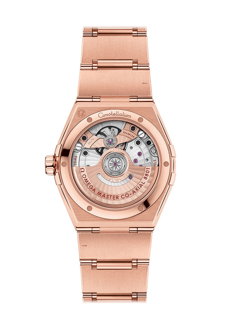 Unworn Omega Constellation CO‑AXIAL MASTER CHRONOMETER 131.50.39.20.03.001. 36 mm, Silver dial, Sedna™ gold case, Sedna™ gold bezel, 8801 calibre, Self Winding Movement, 55 hours power reserve, Sedna™ gold bracelet Butterfly clasp. Water resistant to 50 m.
