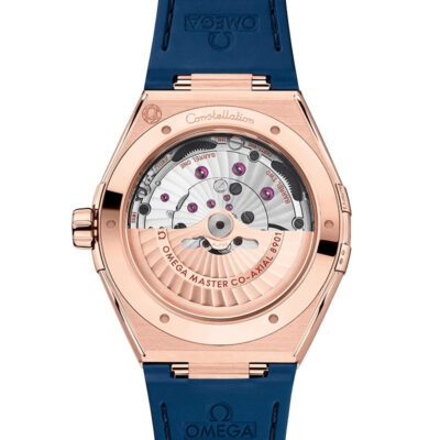 Unworn Omega Constellation CO‑AXIAL MASTER CHRONOMETER 131.63.41.21.03.001. 41 mm, Blue dial, Sedna™ Gold case, Blue ceramic bezel, 8901 calibre, Automatic Movement, 60 hours power reserve, Leather strap Foldover clasp. Water resistant to 50 m.