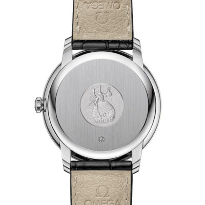 Unworn Omega De Ville PRESTIGE CO‑AXIAL CHRONOMETER 424.13.40.20.01.002. 39.5 mm, Black dial, Steel case, Steel bezel, 2500 calibre, Self Winding Movement, 48 hours power reserve, Leather strap with Pin buckle clasp. Water resistant to 30 m.