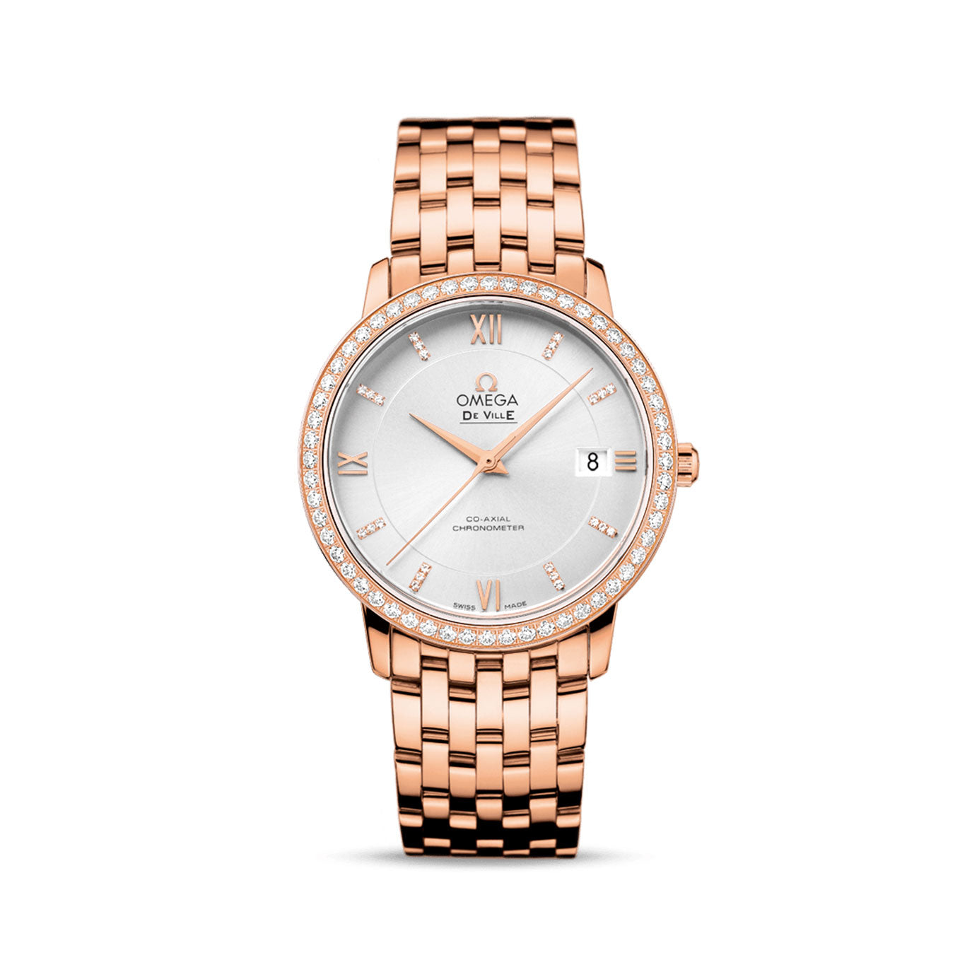Unworn Omega De Ville PRESTIGE CO‑AXIAL CHRONOMETER 424.20.33.20.52.002. 32.7 mm, Silver dial, Steel ‑ red gold case, Red gold bezel, 2500 calibre, Self Winding Movement, 48 hours power reserve, Steel ‑ red gold bracelet with Sliding clasp. Water resistant to 30 m.