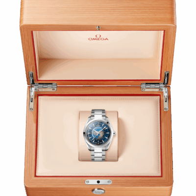 Unworn Omega Seamaster AQUA TERRA 150M CO‑AXIAL MASTER CHRONOMETER GMT WORLDTIMER 220.10.43.22.03.001. 43 mm, Blue dial, Steel case, Steel bezel, OMEGA 8938 calibre, Self Winding Movement, 60 Hours power reserve, Steel bracelet with Butterfly clasp. Water resistant to 150 m.