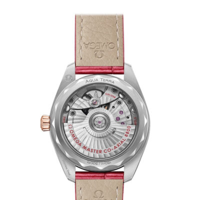 Unworn Omega Seamaster AQUA TERRA 150M CO‑AXIAL MASTER CHRONOMETER 220.28.34.20.60.001. 34 mm, Pink dial, Steel ‑ Sedna™ Gold case, Sedna™ Gold bezel, 8800 calibre, Self Winding Movement, 55 Hours power reserve, Leather strap with Foldover clasp. Water resistant to 150 m.