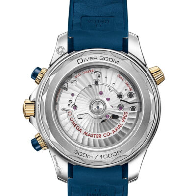 Unworn Omega Seamaster DIVER 300M CO‑AXIAL MASTER CHRONOMETER CHRONOGRAPH 210.22.44.51.03.001. 44 mm, Blue dial, Steel ‑ yellow gold case, Ceramic bezel, 9900 calibre, Self Winding Movement, 60 hours power reserve, Rubber strap with Pin buckle clasp. Water resistant to 300 m.