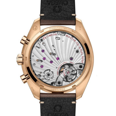 Unworn Omega Speedmaster CHRONOSCOPE CO‑AXIAL MASTER CHRONOMETER CHRONOGRAPH 329.92.43.51.10.001. 43 mm, Brown dial, Bronze Gold case, Brown ceramic bezel, 9908 calibre, Automatic Movement, 60 hour power reserve, Leather strap Pin buckle clasp. Water resistant to 50 m.