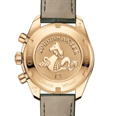 Unworn Omega Speedmaster CO‑AXIAL CHRONOMETER CHRONOGRAPH 324.63.38.50.02.004. 38 mm, Silver dial, Yellow gold case, Yellow gold bezel, 3330 calibre, Automatic Movement, 52 hour power reserve, Leather strap Foldover clasp. Water resistant to 100 m.