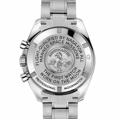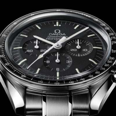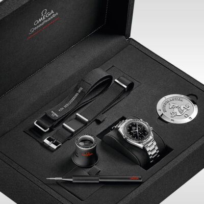 At the heart of this chronograph is OMEGA’s mechanical calibre 1861, a descendent of the legendary manual-winding movement worn on the Moon. This timepiece is offered with a special Moonwatch presentation box which contains a “NATO” strap, a strap for astronauts, a tool to change the bracelet and a book highlighting Speedmaster’s adventures.