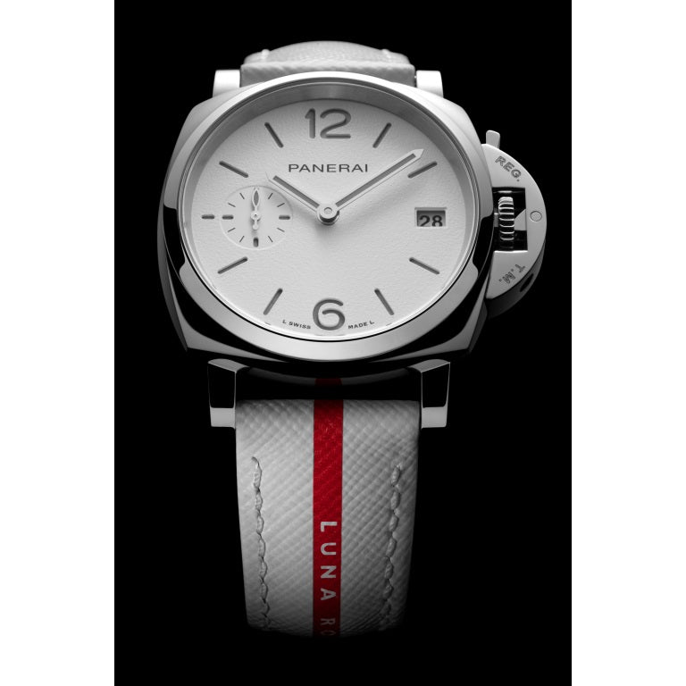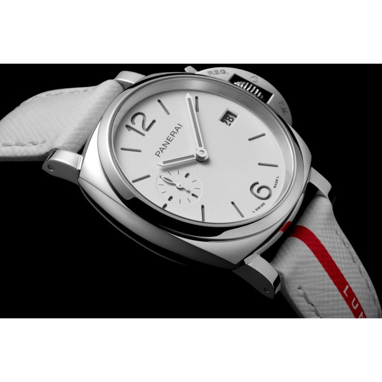 Unworn Panerai Luminor Due Luna Rossa PAM01306. 38 mm, White dial, Polished steel case, Polished steel bezel, P.900 calibre, Automatic mechanical Movement, 23 jewels, 3 days power reserve, Tone on tone Stitching strap. Water resistant to 30 m.