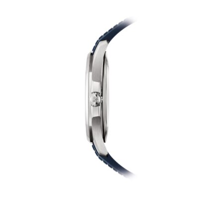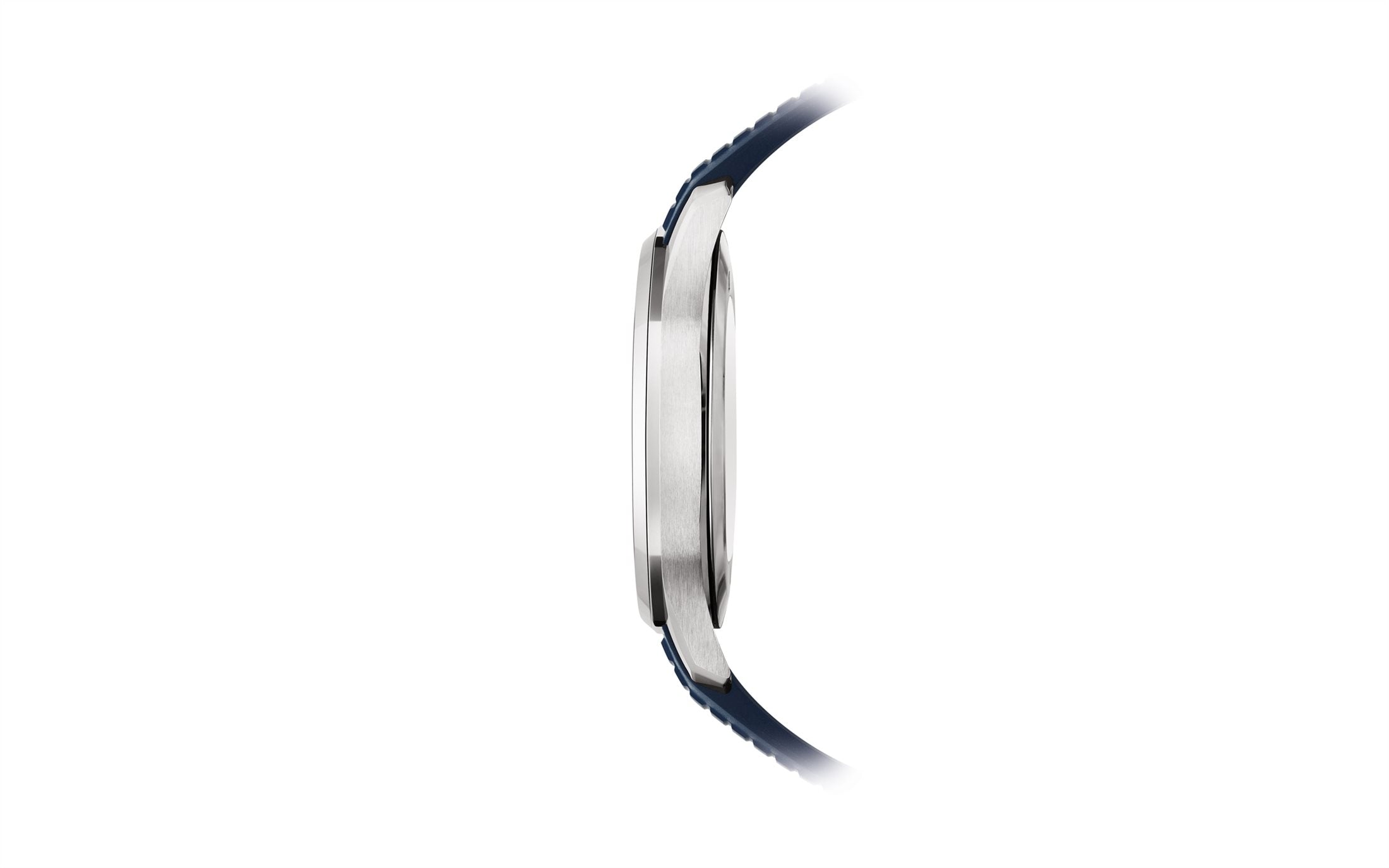 New Patek Philippe Aquanaut luxury sports watch, second hand with date, 42.2 mm, 18k White Gold, Ref. 5168G-001. They are reliable and practical, modern and somewhat unexpected, inspired by Nautilus. Their 18k White Gold case features a rounded, cushion-shaped octagon that is unmistakable. It has polished crown guards protruding from the right side of the watchcase to protect it. The beautiful embossed dial features a radial gradient transition of blue with a slightly lighter blue center and darker blue edges, giving it an even more three-dimensional look. Perfectly readable large applied polished Arabic numerals made of 18k White Gold with luminescent coating in the form of hour markers look harmoniously. On the outer rim of the dial, a silver second track is printed with fairly wide luminous marks located every 5 minutes. The time is indicated by large polished 18k White Gold luminescent rod-shaped hour and minute hands, as well as a thin and elegant Sweep Seconds hand. The aperture date indicator is traditionally located at the 3 o’clock position. A polished 18k White Gold screw-down crown with a ribbed edge for a comfortable grip and the Patek Philippe logo are the finishing touch to the perfect picture. The dial is covered with a scratch-resistant sapphire crystal. The case back is also made of sapphire crystal, which allows you to see the magical work of the movement. Against this backdrop, the fixed 18k White Gold bezel, satin-brushed on the front and polished on the sides, provides a wide view of the dial. The model is equipped with a Patek Philippe caliber 26‑330 S C with a self-winding mechanical movement containing 30 jewels and a power reserve of min. 35 hours – max. 45 hours. This beautiful sport chic watch is presented on a blue tropical rubber strap, made from a new composite material that is ultra-resistant to wear, salt water and UV radiation, and embellished with the exact same pattern as the dial, which beautifully ties all parts of the watch together. It fastens with Patek Philippe’s patented 18k White Gold folding clasp, polished and engraved with the Calatrava cross. Opening the clasp reveals the engraved Patek Philippe logo with the word GENEVE. Water resistant up to 120 m/394ft (12 ATM).