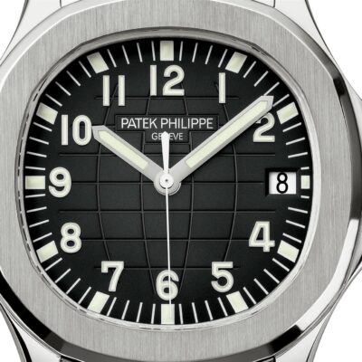 New Patek Philippe Aquanaut Luxury Sports Watch, Date Sweep Seconds, 40,8mm, Stainless Steel, Ref. 5167/1A-001 – reliable and practical, modern and somewhat unexpected, inspired by Nautilus. Their Stainless Steel case features a rounded octagon that is unmistakable. A beautiful black embossed dial looks harmoniously with perfectly readable large applied 18k White Gold Arabic numerals with luminescent coating. Around the outer rim, there are large silver minute markers with fairly wide, luminous every 5 minutes. The time is shown by large stick-shaped hour and minute hands made of 18k White Gold with luminescent coating, as well as a thin and elegant second hand (Sweep Seconds). Date indicator in an aperture traditionally located at the 3 o’clock position. A polished Stainless Steel screw-down crown with a ribbed edge for a comfortable grip and the Patek Philippe logo create a naturally balanced watch. The dial closed by a Scratch-resistant Sapphire Crystal. Sapphire-crystal too case back, which allows of the case, allows you to see the magical work of the movement. Against this backdrop, the fixed Stainless Steel bezel stands out, from satin on the front and polished on the sides, provides a wide view of the dial. The Model has Patek Philippe Caliber 26‑330 S C, with a self-winding mechanical movement containing 30 Jewels, with a power reserve of min. 35 hours – max. 45 hours. This beautiful sporty-chic watch is presented on a Stainless Steel Integrated Bracelet with brushed center links and polished side links . It fastens with Patek Philippe’s patented Stainless Steel Aquanaut folding clasp, which has a polished surface and is engraved with the Calatrava Cross. Opening the clasp reveals an engraved Patek Philippe logo with the word GENEVE. Water resistant up to 120m/394ft (12 ATM).