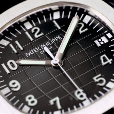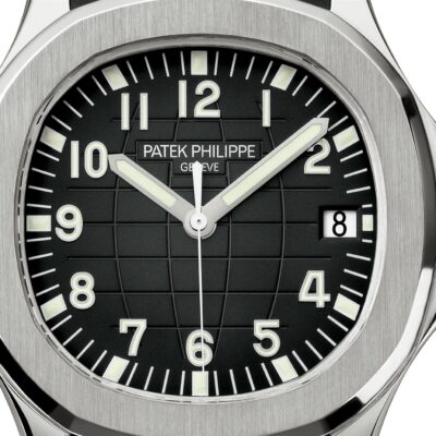 New Patek Philippe Aquanaut Luxury Sports Watch, Date Sweep Seconds, 40,8mm, Stainless Steel, Ref. 5167A-001 – reliable and practical, modern and somewhat unexpected, inspired by Nautilus. Their Stainless Steel case features a rounded octagon that is unmistakable. A beautiful black embossed dial looks harmoniously with perfectly readable large applied 18k White Gold Arabic numerals with luminescent coating. Around the outer rim, there are large silver minute markers with fairly wide, luminous every 5 minutes. The time is shown by large stick-shaped hour and minute hands made of 18k White Gold with luminescent coating, as well as a thin and elegant second hand (Sweep Seconds). Date indicator in an aperture traditionally located at the 3 o’clock position. A polished Stainless Steel screw-down crown with a ribbed edge for a comfortable grip and the Patek Philippe logo create a naturally balanced watch. The dial closed by a Scratch-resistant Sapphire Crystal. Sapphire-crystal too case back, which allows of the case, allows you to see the magical work of the movement. Against this backdrop, the fixed Stainless Steel bezel stands out, from satin on the front and polished on the sides, provides a wide view of the dial. The Model has Patek Philippe Caliber 26‑330 S C, with a self-winding mechanical movement containing 30 Jewels, with a power reserve of min. 35 hours – max. 45 hours. This beautiful sporty-chic watch is presented on a black tropical rubber strap made from a new composite material that is ultra-resistant to wear, salt water and UV radiation. It fastens with Patek Philippe’s patented stainless steel Aquanaut folding clasp, which has a polished surface and is engraved with the Calatrava Cross. Opening the clasp reveals an engraved Patek Philippe logo with the word GENEVE. Water resistant up to 120m/394ft (12 ATM).