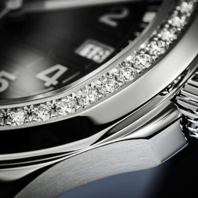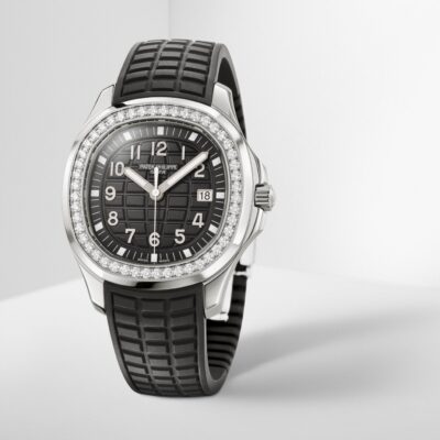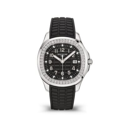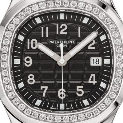New Patek Philippe Aquanaut Luce luxury Ladies watch, with a larger diameter 38,8mm, Stainless Steel, Ref. 5267/200A-001. The first complex quartz wristwatch in the modern Aquanaut sports collection, which perfectly matches the character of this young and dynamic watch line. His Stainless Steel rounded, pillow-like octagon-shaped case and gently curved lugs, complemented by polished and satin finishes are unmistakable. On a beautiful black dial with embossed “Aquanaut” harmoniously looks perfectly readable large applied polished Arabic numerals made of 18k White Gold with luminescent coating in the form of hour markers. The manufacturer paid special attention to the second track on the outer rim of the dial, on which applied silvery lines with fairly wide luminous marks located every 5 minutes. Large polished luminous hour and minute hands in 18k White Gold indicate the time. These are complemented by a slim and elegant second hand (Sweep seconds hand). The date window is traditionally at the 3 o’clock position. A polished Stainless Steel screw-down crown with a ribbed edge for a comfortable grip and the Patek Philippe logo is the finishing touch to the perfect picture. The dial is covered with a scratch-resistant sapphire crystal. The screw-down Solid case back is made of Stainless Steel. The elegant highlight of this model is the fixed sparkling stainless steel bezel set with 48 diamonds totaling 1,1cr with polished on the sides, provides a wide view of the dial. The finish on the side of the bezel is amazing because at first glance, it looks rounded, but upon closer inspection, you can see the crisp edges playing with the light. The model is equipped with a Patek Philippe caliber E 23‑250 S C with a Quartz movement powered by a silver oxide battery with a 3-year lifespan. This beautiful sport chic watch is presented on an Integrated Black Composite material strap. He is highly resistant to wear, salt water and UV radiation. The strap are fastens with Patek Philippe’s patented Stainless Steel folding clasp, polished and engraved with the Calatrava cross. Opening the clasp reveals the engraved Patek Philippe logo with the word GENEVE. Water resistant up to 120m/394ft (12 ATM).