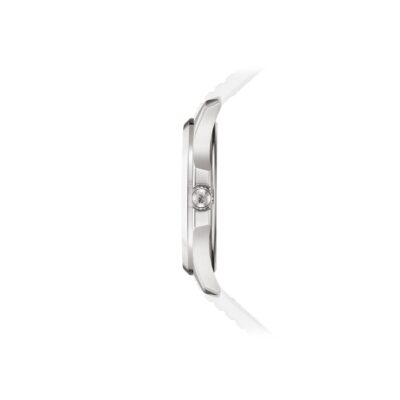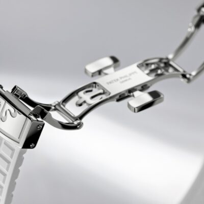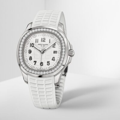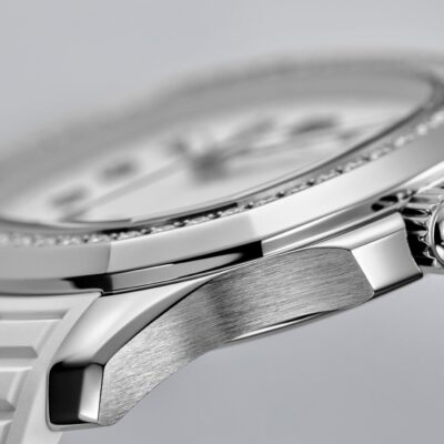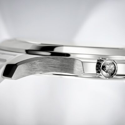New Patek Philippe Aquanaut Luce luxury Ladies watch, with a larger diameter 38,8mm, Stainless Steel, Ref. 5267/200A-010. The first complex quartz wristwatch in the modern Aquanaut sports collection, which perfectly matches the character of this young and dynamic watch line. His Stainless Steel rounded, pillow-like octagon-shaped case and gently curved lugs, complemented by polished and satin finishes are unmistakable. On a beautiful Matte white dial with embossed “Aquanaut” harmoniously looks perfectly readable large applied polished Arabic numerals made of blackened 18k White Gold with luminescent coating in the form of hour markers. The manufacturer paid special attention to the second track on the outer rim of the dial, on which applied black lines with fairly wide luminous marks located every 5 minutes. Large polished luminous hour and minute hands in blackened 18k White Gold indicate the time. These are complemented by a slim and elegant second hand (Sweep seconds hand). The date window is traditionally at the 3 o’clock position. A polished Stainless Steel screw-down crown with a ribbed edge for a comfortable grip and the Patek Philippe logo is the finishing touch to the perfect picture. The dial is covered with a scratch-resistant sapphire crystal. The screw-down Solid case back is made of Stainless Steel. The elegant highlight of this model is the fixed sparkling Stainless Steel bezel set with 48 diamonds totaling 1,1cr with polished on the sides, provides a wide view of the dial. The finish on the side of the bezel is amazing because at first glance, it looks rounded, but upon closer inspection, you can see the crisp edges playing with the light. The model is equipped with a Patek Philippe caliber E 23‑250 S C with a Quartz movement powered by a silver oxide battery with a 3-year lifespan. This beautiful sport chic watch is presented on an Integrated matte white Composite material strap. He is highly resistant to wear, salt water and UV radiation. The strap are fastens with Patek Philippe’s patented Stainless Steel folding clasp, polished and engraved with the Calatrava cross. Opening the clasp reveals the engraved Patek Philippe logo with the word GENEVE. Water resistant up to 120m/394ft (12 ATM).
