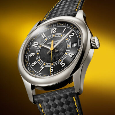 Introducing the Patek Philippe Calatrava 6007G-001, a splendid timepiece that showcases the harmony of classic elegance and contemporary design. Crafted from 18k white gold, this 40mm watch exemplifies the refined aesthetic that Patek Philippe is renowned for. The ebony black dial features a “carbon” style texture in the center, surrounded by a railway track scale and white gold applied numerals that enhance its modern look. The baton-style hands with luminescent coating provide excellent readability, and a date aperture at 3 o’clock adds a functional touch. This model is powered by the self-winding Caliber 26‑330 S C, known for its precision and reliability. The sapphire-crystal case back allows for a clear view of the meticulously crafted movement, revealing the intricate workings that epitomize Swiss watchmaking expertise. With a power reserve of 35-45 hours, this watch is designed for daily wear and lasting performance. The watch is completed with a matching blue calfskin strap with a white-gold prong buckle, ensuring a secure and comfortable fit. The strap’s texture harmoniously complements the dial, making it a cohesive and stylish choice for any occasion.