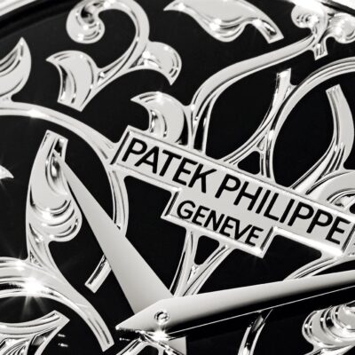 Luxury Watch Patek Philippe Calatrava Volutes and Arabesques, polished Platinum hand engraved platinum and black enamel case, 38mm, Reference 5088/100P-001 – combination of high watchmaking skills and masterly hand engraving. The lustrous polished 18k White Gold dial is striking and contrasts beautifully with the midnight black enamel. It showcases a rich pattern of scrolls and arabesques handcrafted by a craftsman inspired by antique firearms decor. Complementing the elegant dial are polished 18-carat white gold hands in the Dauphine style. A polished Platinum Screw-down crown with a ribbed edge for easy grip and the Patek Philippe logo is located on the right side of the case. The dial closed by a Scratch-resistant Sapphire Crystal. Sapphire-crystal too case back, which allows of the case, allows you to see the magical work of the movement. The watch features a Platinum fixed polished smooth bezel. This model has caliber Patek Philippe Caliber 240, an Ultra-thin self-winding mechanical movement containing 27 Jewels, with a power reserve of 48 hours. She is presented is on shiny black Alligator/Crocodile leather strap with square scales, hand-stitched and a striking platinum clasp with hand-engraved teeth. The water resistance is up to 30m/100ft (3 ATM).