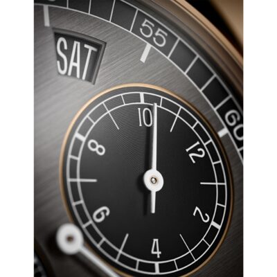 - Functions: Regulator-style display: hour and seconds subdials, sweep minutes. Day, date, month in apertures