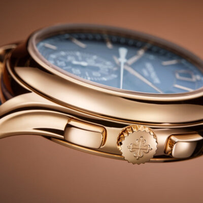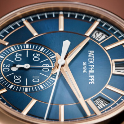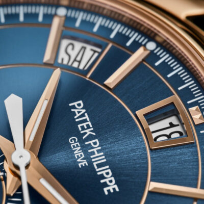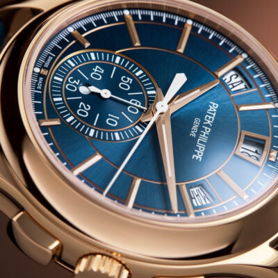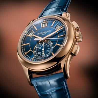 Introducing the Patek Philippe Complications 5905R-010, an epitome of sophistication and advanced horological engineering. Crafted in 18k rose gold, this 42mm watch combines functionality with refined aesthetics, making it a standout choice for watch enthusiasts and collectors. The elegant Sunburst blue dial is accented with applied gold hour markers and dauphine hands, ensuring legibility and class. This model features a unique combination of an annual calendar and a flyback chronograph, offering practicality and precision. The day, date, and month are displayed in apertures across the top, while a neatly integrated 60-minute counter at 6 o’clock enhances the dial’s symmetry and functionality. Powered by Patek Philippe’s self-winding Caliber CH 28‑520 QA 24H, the watch boasts a sophisticated movement visible through the sapphire crystal case back, demonstrating exquisite craftsmanship and meticulous attention to detail. This movement ensures reliability and a power reserve of 45-55 hours, perfect for daily wear. Completing this luxurious timepiece is a matte black alligator strap with a fold-over clasp, providing comfort and secure fit. The watch is also water-resistant up to 30 meters, ensuring durability for everyday use.