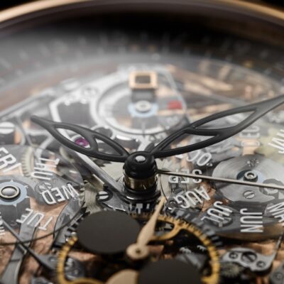 - Functions: Minute repeater with classic gongs. Perpetual calendar with retrograde date hand. Day, month and leap year in apertures. Moon phases by hand. Small seconds
