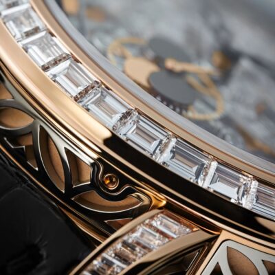 - Bezel Material: 18k Rose Gold set with 58-baguette diamonds