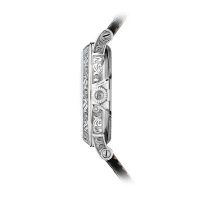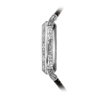 - Clasp: 18k White Gold Hand-engraved fold-over clasp