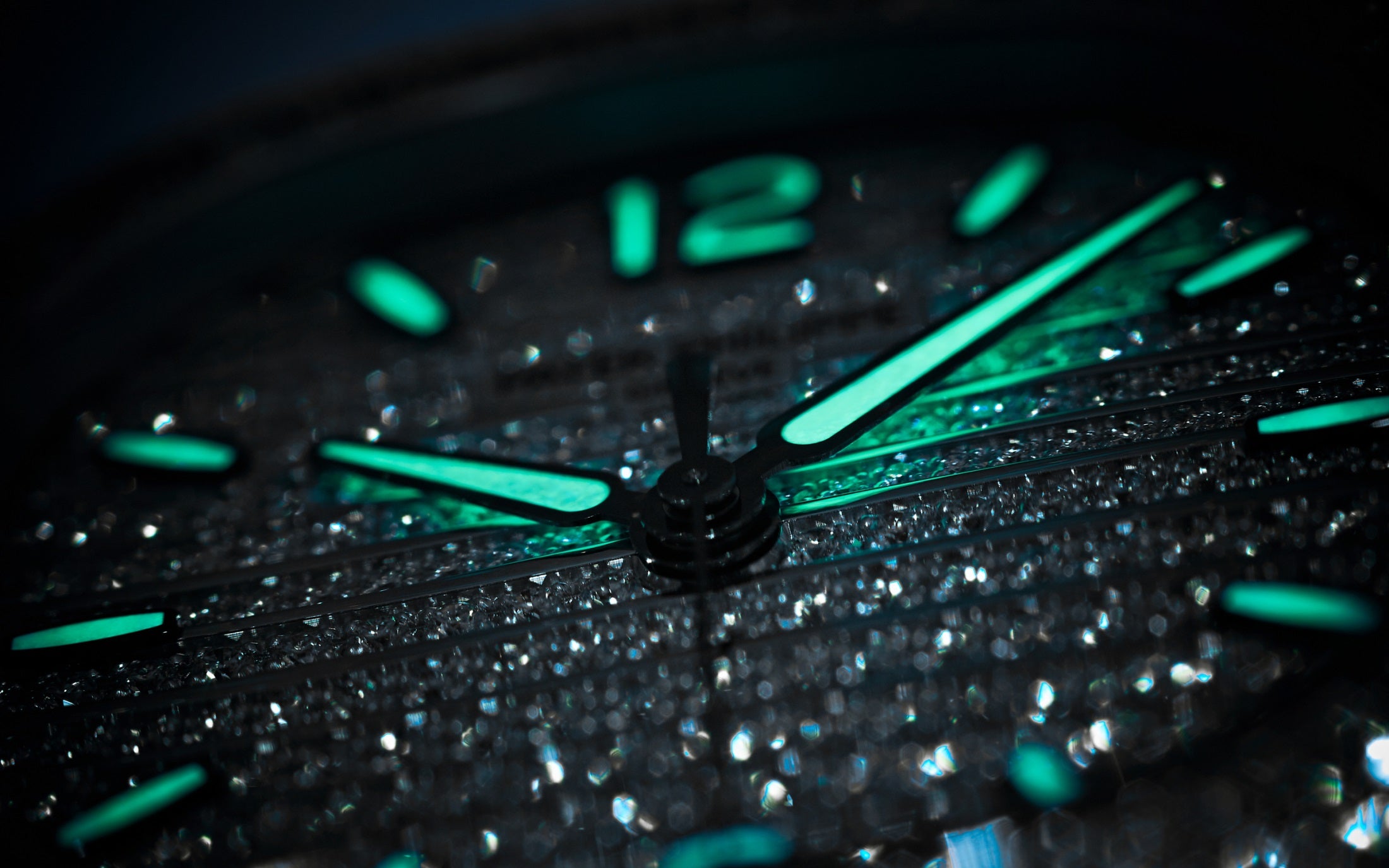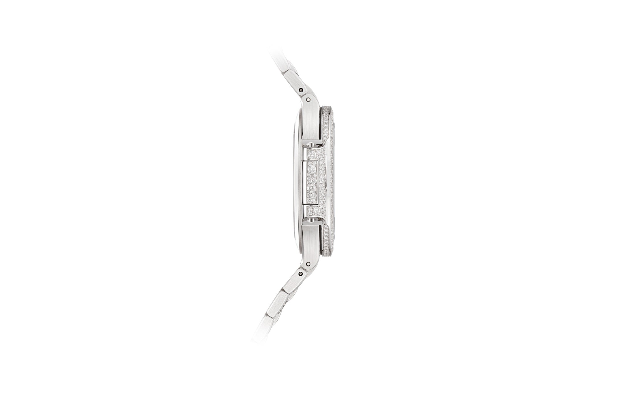 - Case material: 18K White Gold with 518 diamonds: ~2.52 cts.
