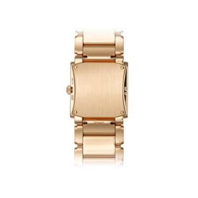 New Patek Philippe Twenty~4 Quartz Diamond Ladies luxury watch, 25.1 x 30 mm, 18k Rose Gold with 34 diamonds (~0.57 ct), Ref. 4910/1201R-001. This prestigious wristwatch is the epitome of timeless feminine elegance. The combination of classic and modern has made this watch the perfect companion for active professional women who want to stand out and express themselves. The sophisticated design of this stunning watch complements both business dresses and evening attire. The main attraction of the model is a Chocolate brown dial with sunburst decorated. Its beauty is emphasized large by 18k Rose Gold trapezoid-shaped markers and well-read even in the dark 18k Rose Gold Arabic numerals 6 and 12 with luminescent coating. Hands in the form of wands made of 18k Rose Gold with a luminescent coating also look luxurious. The polished 18k Rose Gold crown, the Patek Philippe logo the Calatrava Cross trademark, completes the perfect image. The dial is covered with a slightly curved scratch-resistant sapphire crystal, which emphasizes the curves of the case. The solid case back is made of 18k Rose Gold. The elegant highlight of the model is a slightly curved case with stunning flawless Wesselton diamonds arranged vertically along the case on a fixed 18k Rose Gold bezel, 17 on each side. The model is equipped with a Patek Philippe Quartz movement Caliber E 15 with silver oxide battery 1.55 V and a service life of 3 years. This fabulously beautiful timepiece is presented on a solid 18k Rose Gold bracelet with wide, gently curved central links framed by narrow double-tiered links. The link steps follow the steps of the lugs, giving the watch a more barrel-shaped silhouette. The same applies to the module between the lugs, which follows the shape of the central link. It fastens with a Patek Philippe patented folding clasp in polished 18k Rose Gold engraved and the Calatrava cross. Water resistant up to 30m/99ft (3 ATM).