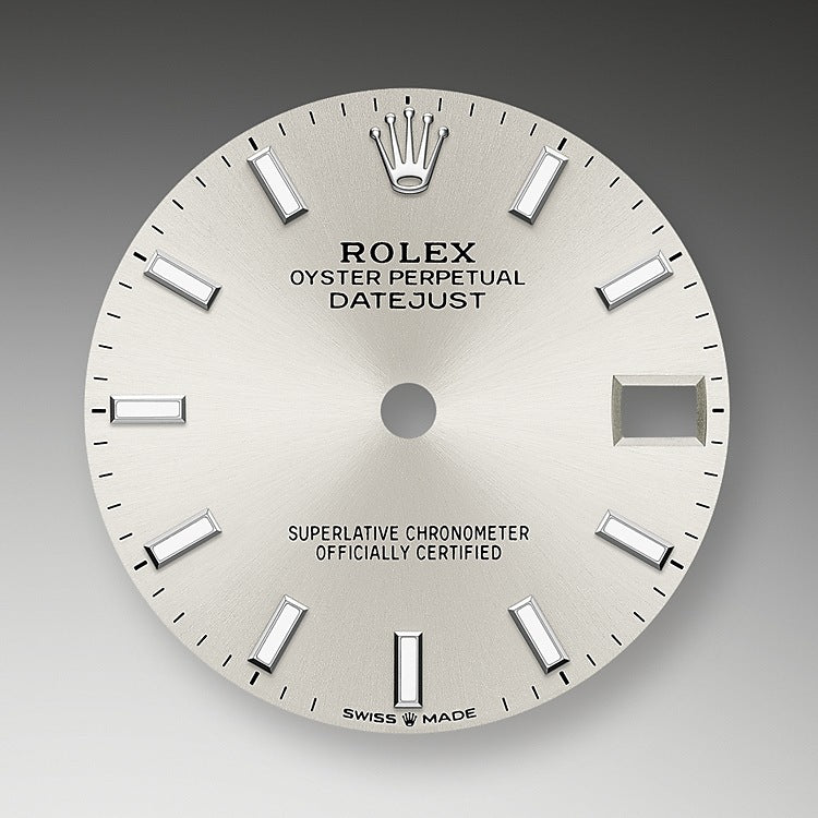 - Dial color: Silver dial with a fine sunrays and Indexes of 18k White Gold with luminous fill as hour markers