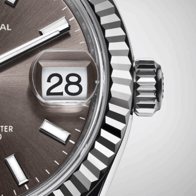 - Crystal: Scratch-resistant sapphire, Cyclops lens over the date