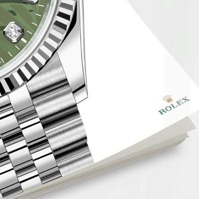 - Dial color: Olive green dial with palm motif and 10 Diamonds as hour markers framed in 18k White Gold