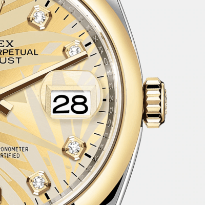 - Case material: Yellow Rolesor – combination of Oystersteel and 18k Yellow Gold