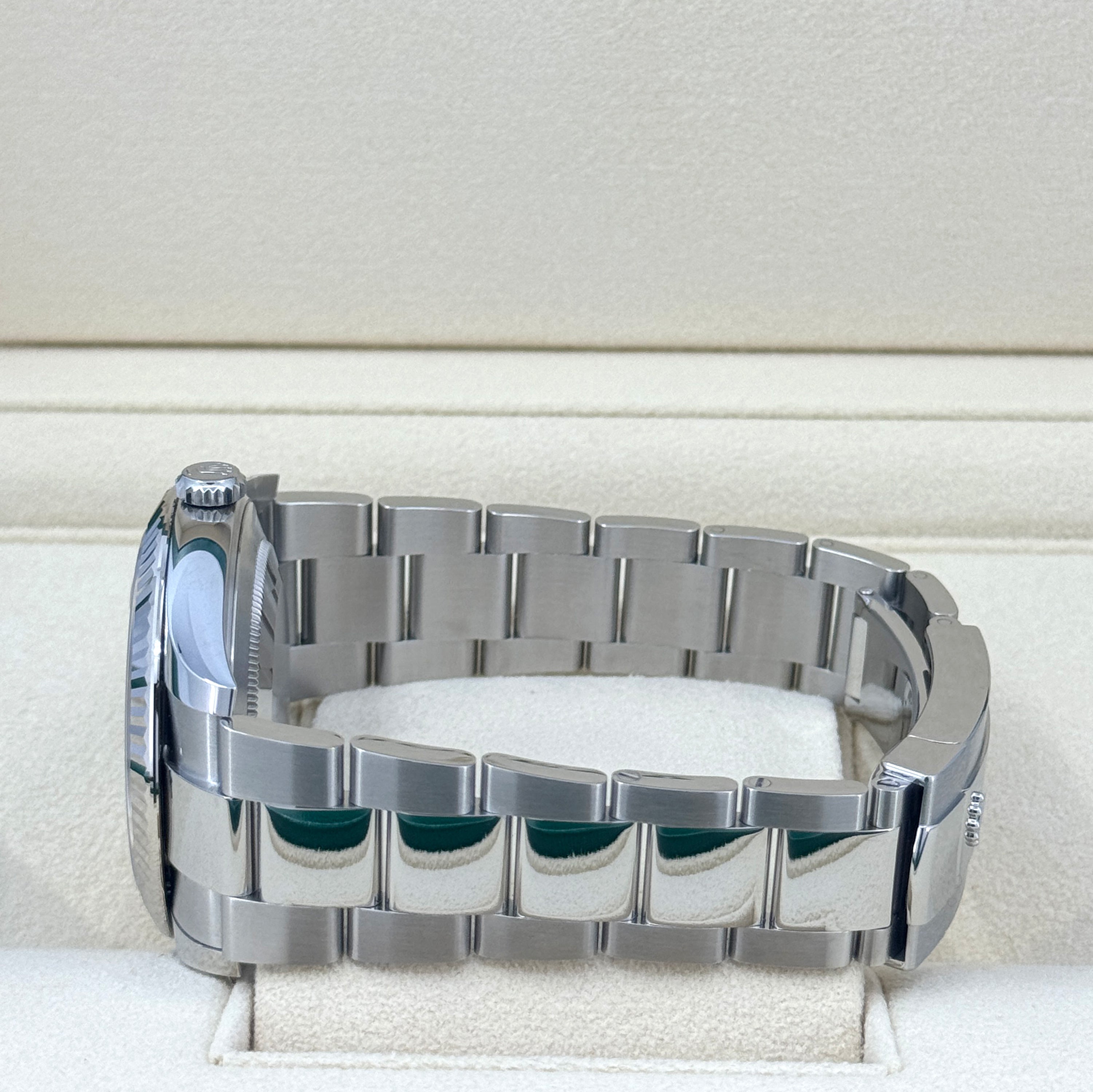 • Case material: White Rolesor – combination of Oystersteel and 18k White Gold