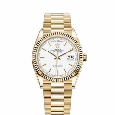 Unworn classic Rolex Day-Date, 36mm, 18k Yellow Gold, Ref# 128238-0081 – luxury, elegance and practicality.