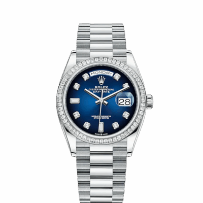 Unworn classic Rolex Day-Date, 36mm, Platinum and Diamonds, Ref# 128396tbr-0008 – luxury, elegance and practicality.