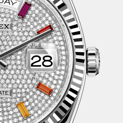 • Dial color: Diamond-paved dial with a rainbow-coloured sapphires as hour markers