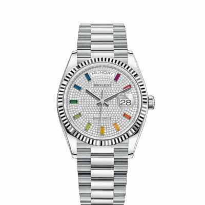 Unworn classic Rolex Day-Date, 36mm, Platinum, Ref# 128236-0003 – luxury, elegance and practicality.