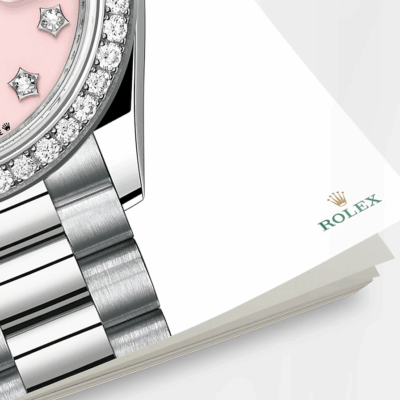 - Dial color: Pink opal dial with Nine diamonds set in star-shaped framed in 18k White Gold settings and 8 diamonds set in Roman numeral IX framed in 18k White Gold
